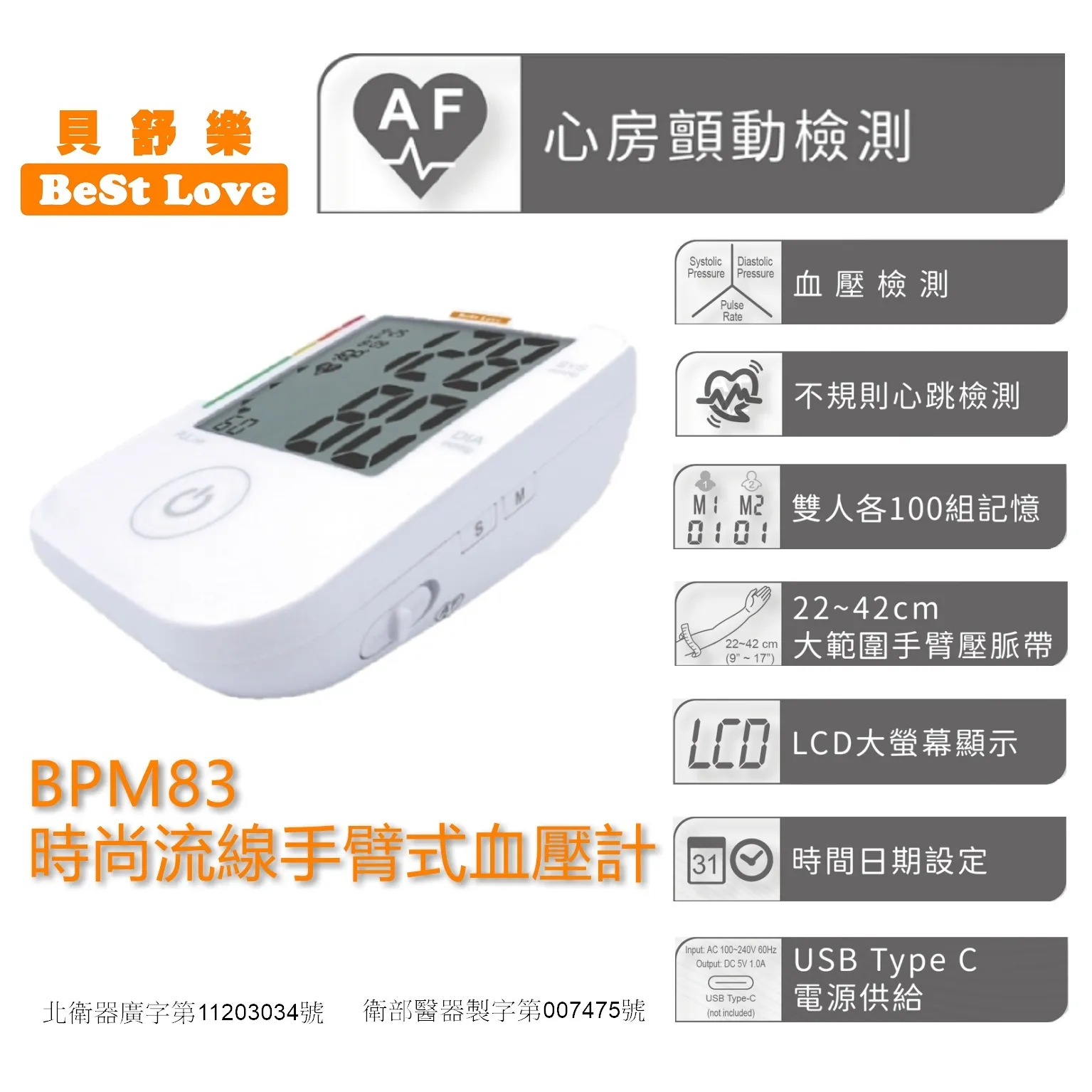 貝舒樂BPM83手臂式電子血壓計