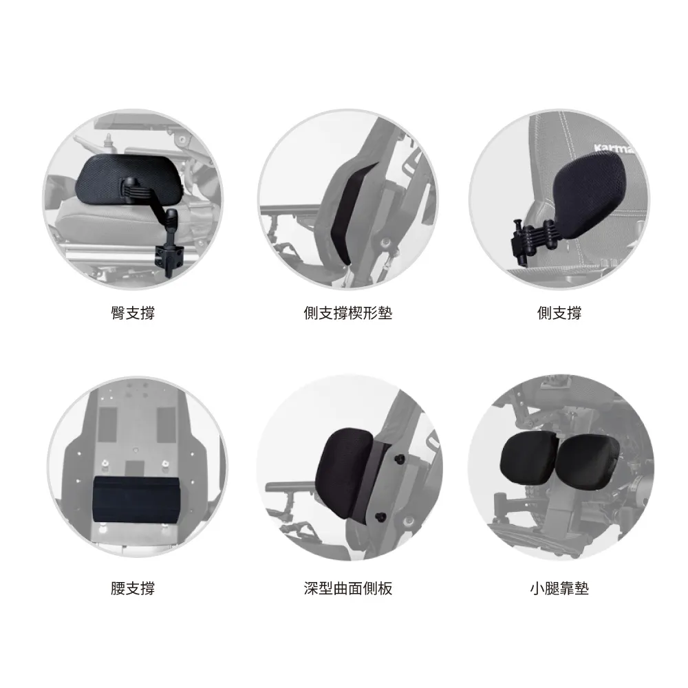 30種以上的選配件,提供額外的身體支撐、改善姿勢和增強舒適性,適配各種身形與需要。頭靠