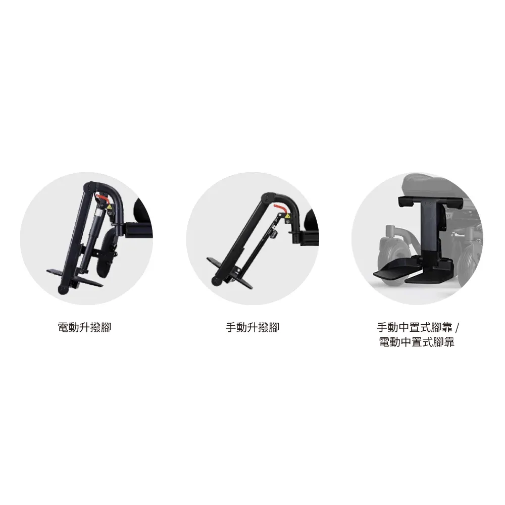 Versus 的通用座椅導軌可輕鬆安裝康揚 Lectus 系列和大多數第三方廠商的配件與支撐設備。多項電動姿勢變換功能