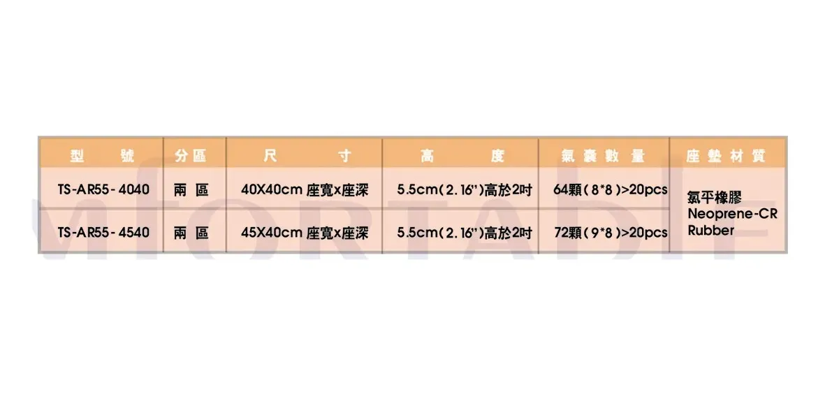 • 坐墊採用最新科技橡膠材質Neoprene-CR,中文為氯平橡膠。