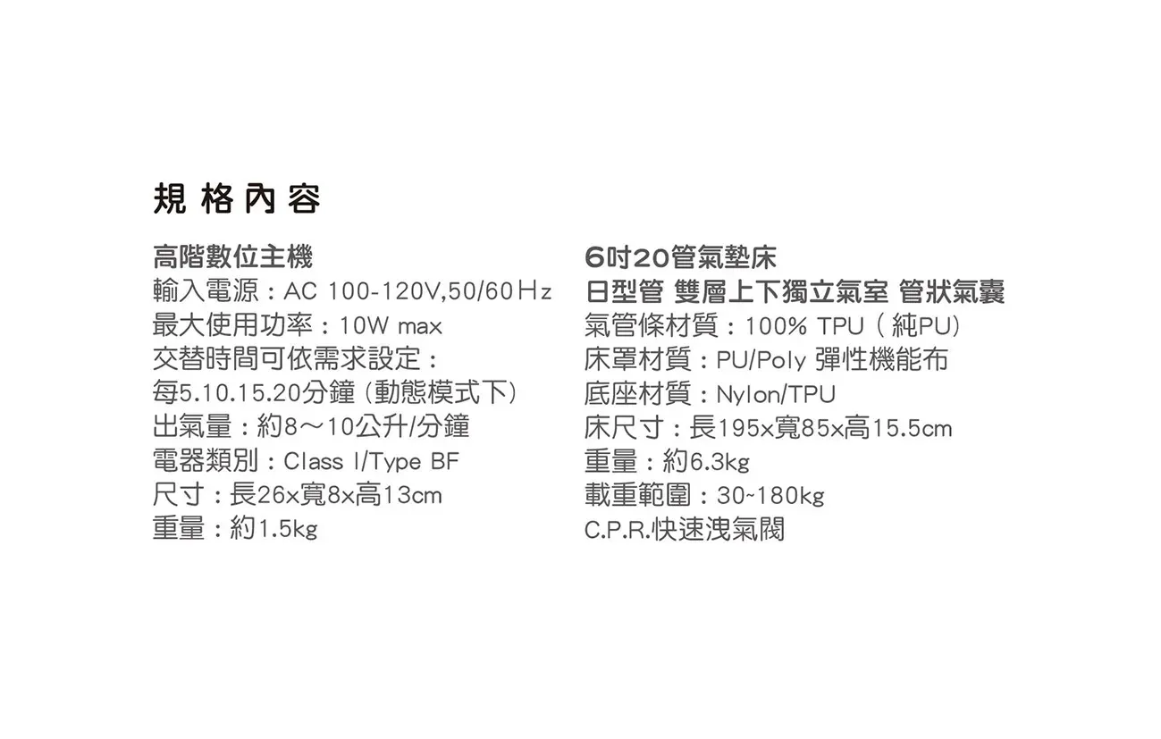 首頁 > 產品介紹 > 氣墊床 > TS-50U 全功能數位進階型 6吋三管純TPU雙層獨立氣室氣墊床(進階型)